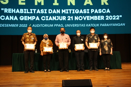 Seminar nasional“Rehabilitasi dan Mitigasi Pasca Bencana Gempa Cianjur 21 November 2022” diselenggarakan pada Kamis, 8 Desember 2022 berkaitan dengan bencana gempa dengan magnitude sebesar 5.8 yang terjadi di Cianjur pada tanggal 21 November 2022 sebagai bentuk partisipasi Universitas Katolik Parahyangan dalam menanggapi bencana tersebut.